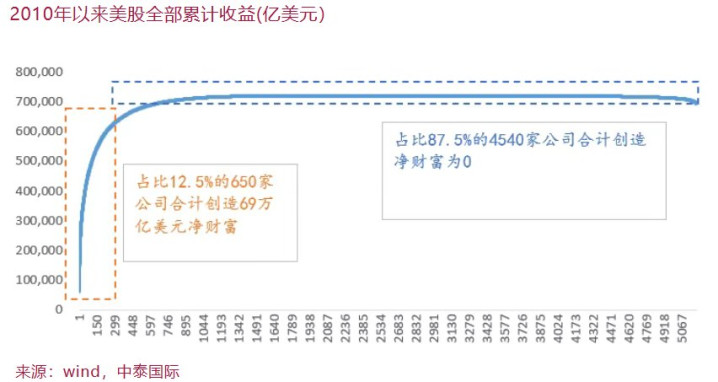 格隆汇9月15日|中泰国际首席经济学家李迅雷近日发文称,A股这轮一开始以估值水平提升驱动(存款利率下行)为特征的慢牛行情,已经转变为以高成长预期驱动为特征的结构性牛市。存在即合理,屡创历史新高的美股同样具有鲜明的结构性牛市特征,如从2010年至今,头部的12.5%的美股上市公司贡献了几乎美股总市值的净增长,而剩余87.5%上市公司的市值合计没有变化。